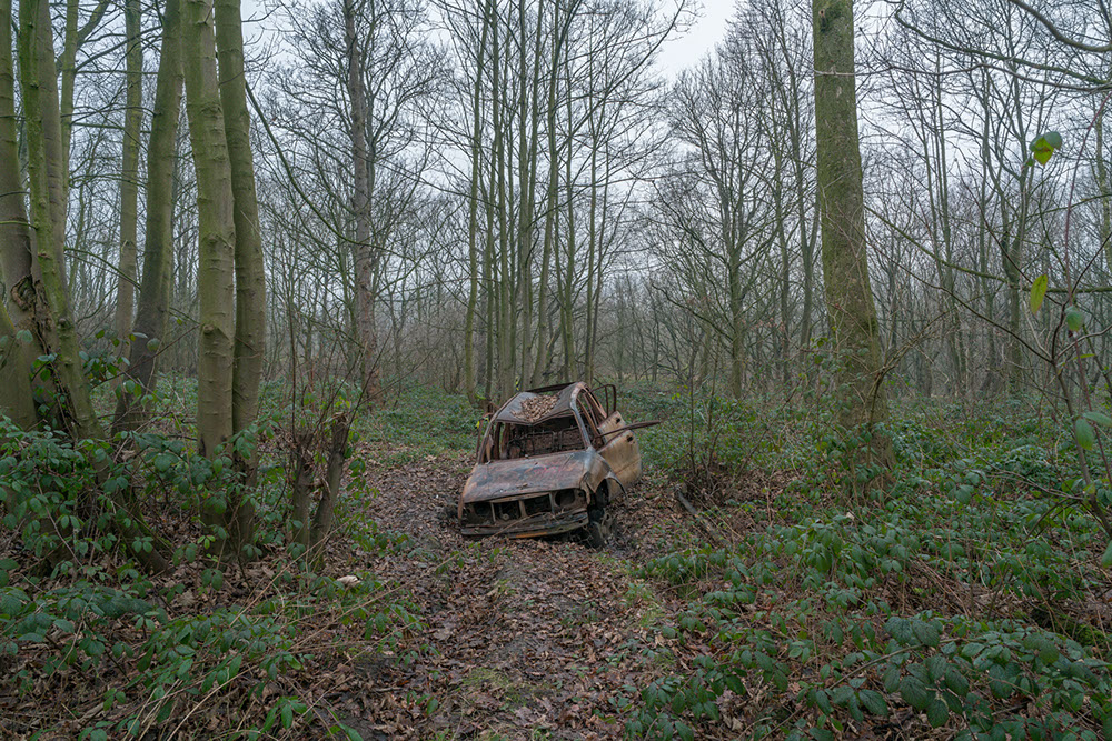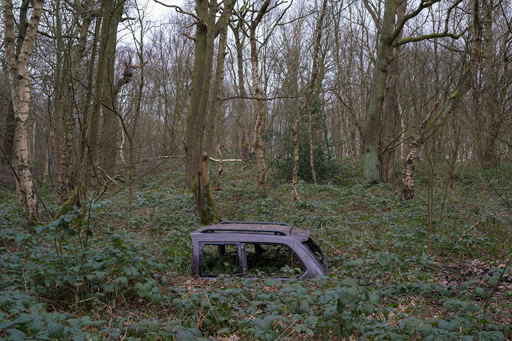 The project currently concentrates on fourteen of these woods within Metropolitan Liverpool. Whilst the heart of the project is photographing Hugo at play, it also extends to documenting the spaces themselves and the visual relationship they have with their urban surroundings. Capturing the paradoxes and juxtapositions as we recognise their importance then continually challenge their existence.