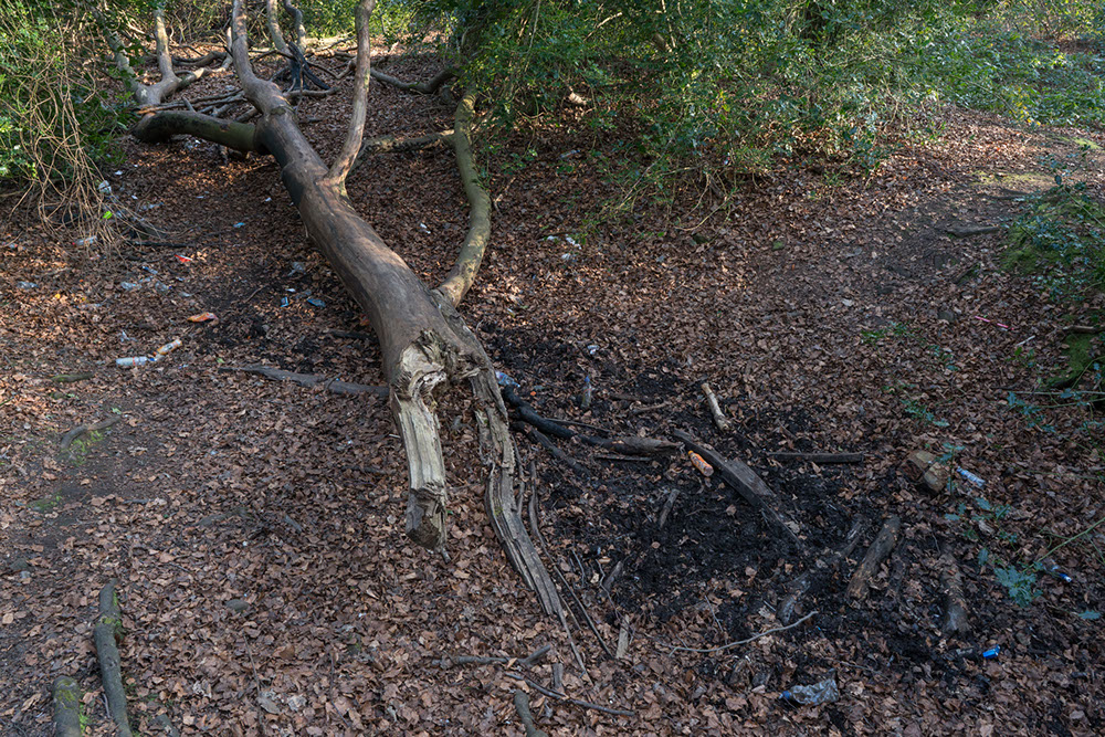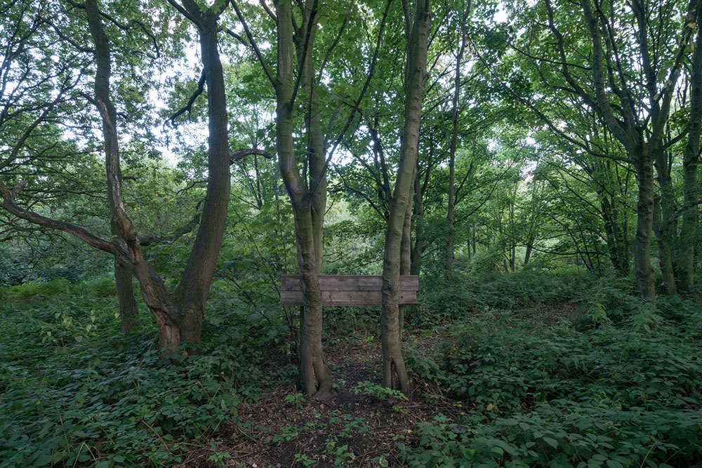 Finding Fangorn started with a search to find new outdoor places to visit and discover with my son, Hugo. It draws on this experience of actively looking for what is left of old woodland spaces within Liverpool to explore and act out a child’s make-believe scenarios. Fangorn as in Tolkien's 'Fangorn Forest' is a fantasy place and what is left of these woodland spaces are used by many to escape from the urbanisation that surrounds them through a suggestion of wilderness. Hugo suffers from Epilepsy with developmental delay. Whilst Finding Fangorn explores photography’s innate ability to document experiences and places, as the father of a disabled child, it is also through exploration, discovery and imaginative play, about finding Hugo.